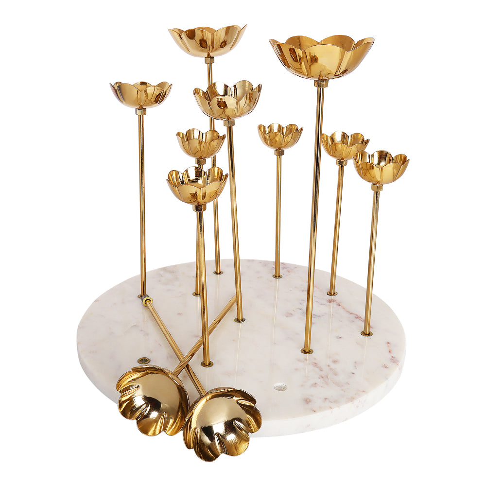 Tea Light Holder Brass FlowersThis handcrafted golden colored Tea light holder with leaves n branches is an ideal decorative item to add a touch...