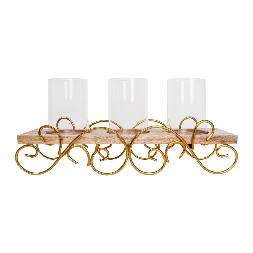 Set Of 3 CS in Wood...Handcrafted in wood and iron this set of 3 candle holder is a great example of fusion. Our range of...