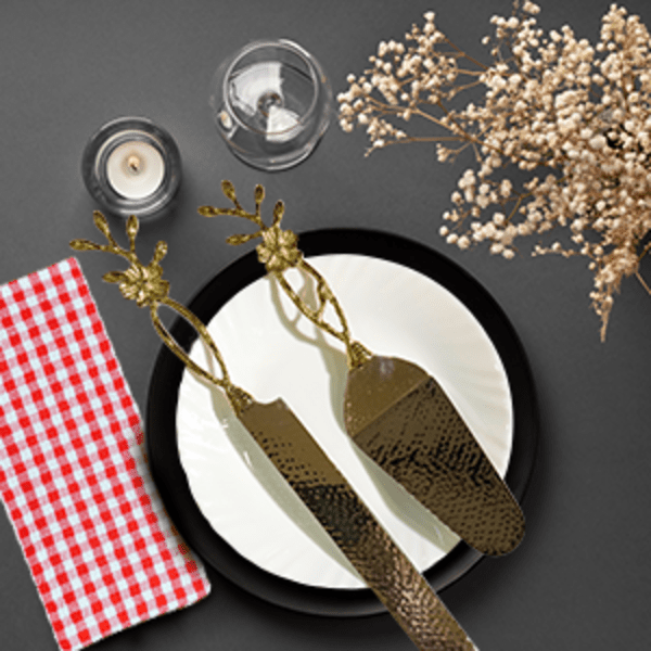 Cake Server & Cake KnifeHandcrafted in steel with brass leaves this pair of cake server and cake knife is a must have for your...