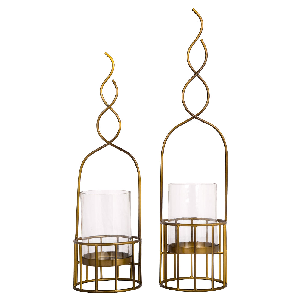 Skillfully handcrafted from iron in antique gold finish this set of candle holders in basket shape is designed to complement your candles and comes with 2 glass holders to accentuate the light from your candles. This master-piece has an exquisite design and will lighten up your drawing room and in addition to a perfect addition to home decor it is also an ideal gift option. Candles of up to 3 inches in diameter can be used. This is a handcrafted product and may have slight irregularities which only add to the charm of the finished product making it an exquisite piece. We recommend dusting with a soft dry cloth. Do not use abrasive cleaner. Do not leave spills unattended.