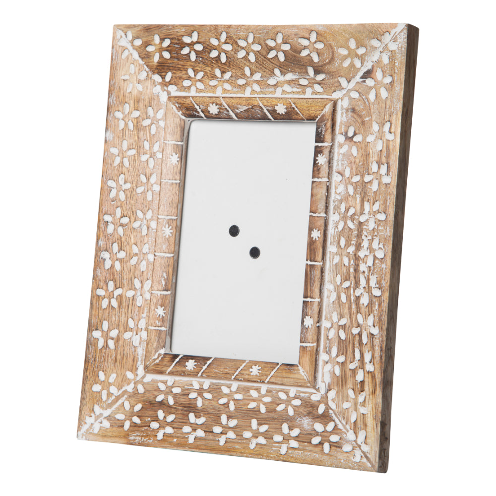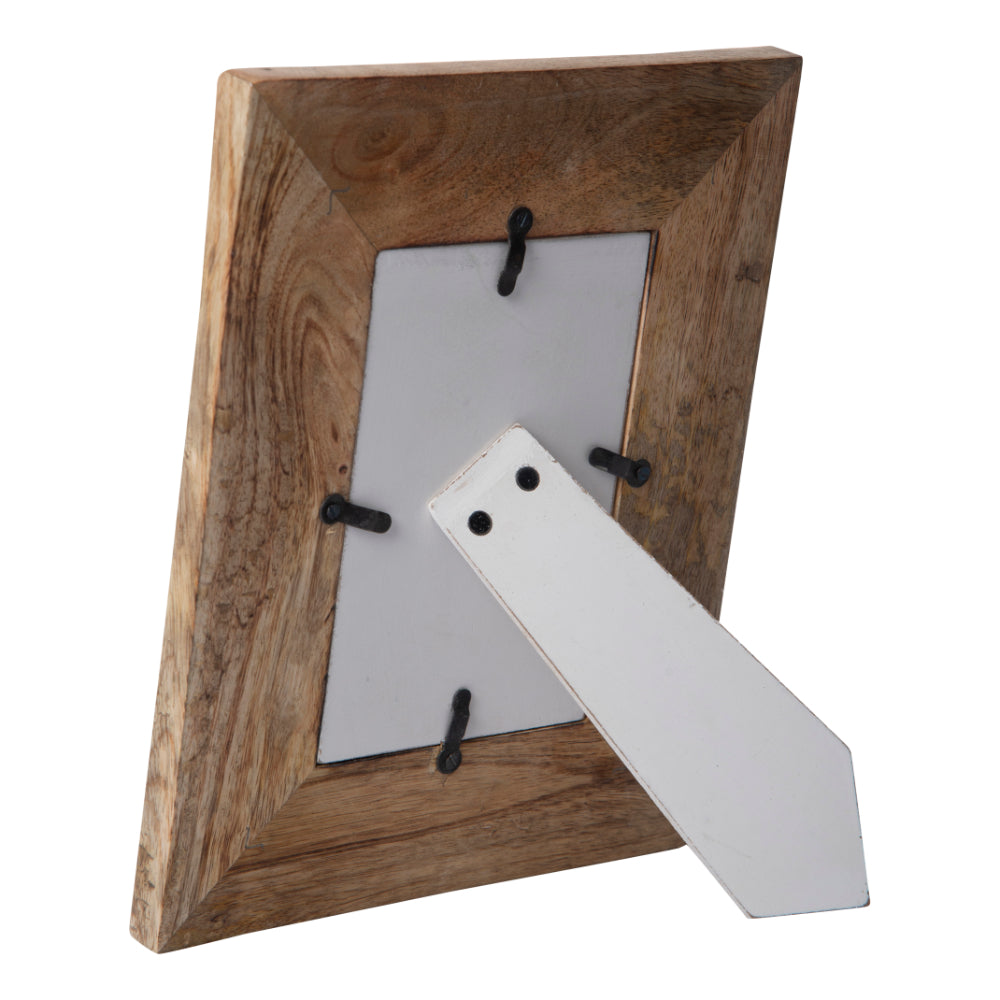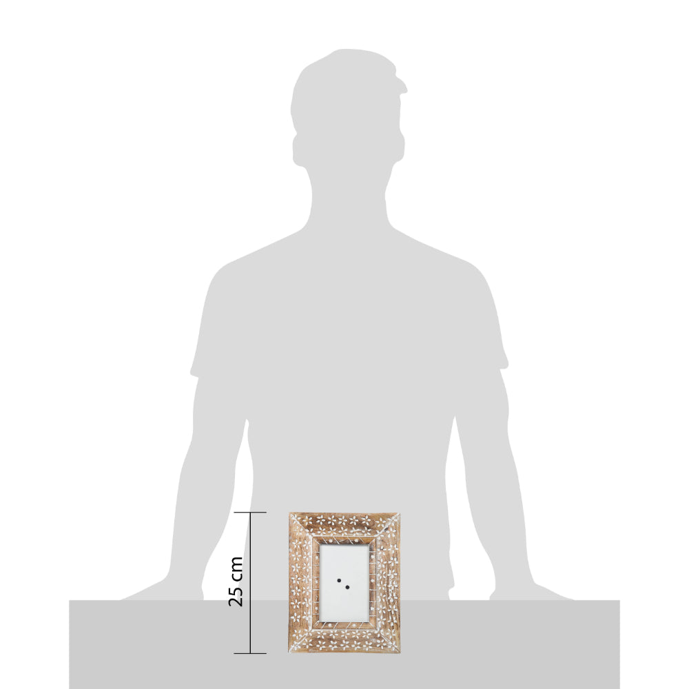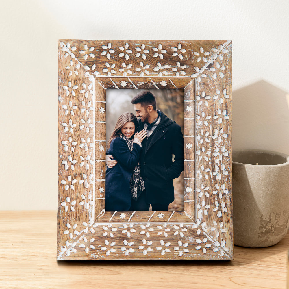 Our intricately made mango wood picture frames feature an eye-catching natural brown design to really show off any special photo. This brown colored wood photo frame in burnt white finish has been designed to hold a 4*6 inch photograph. All our beautiful frames are made from mango wood, one of the most sustainable woods known to man.