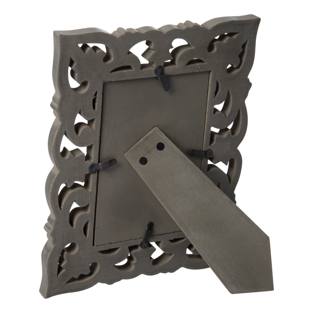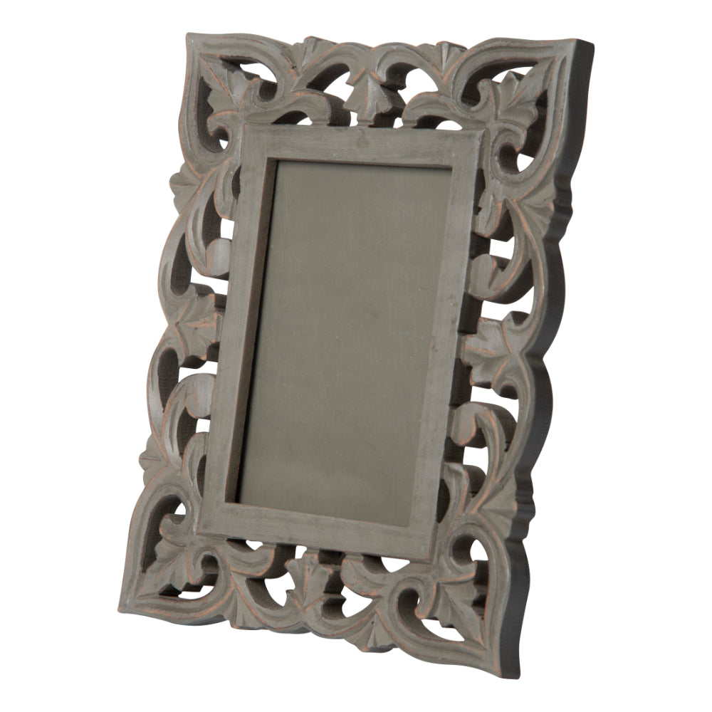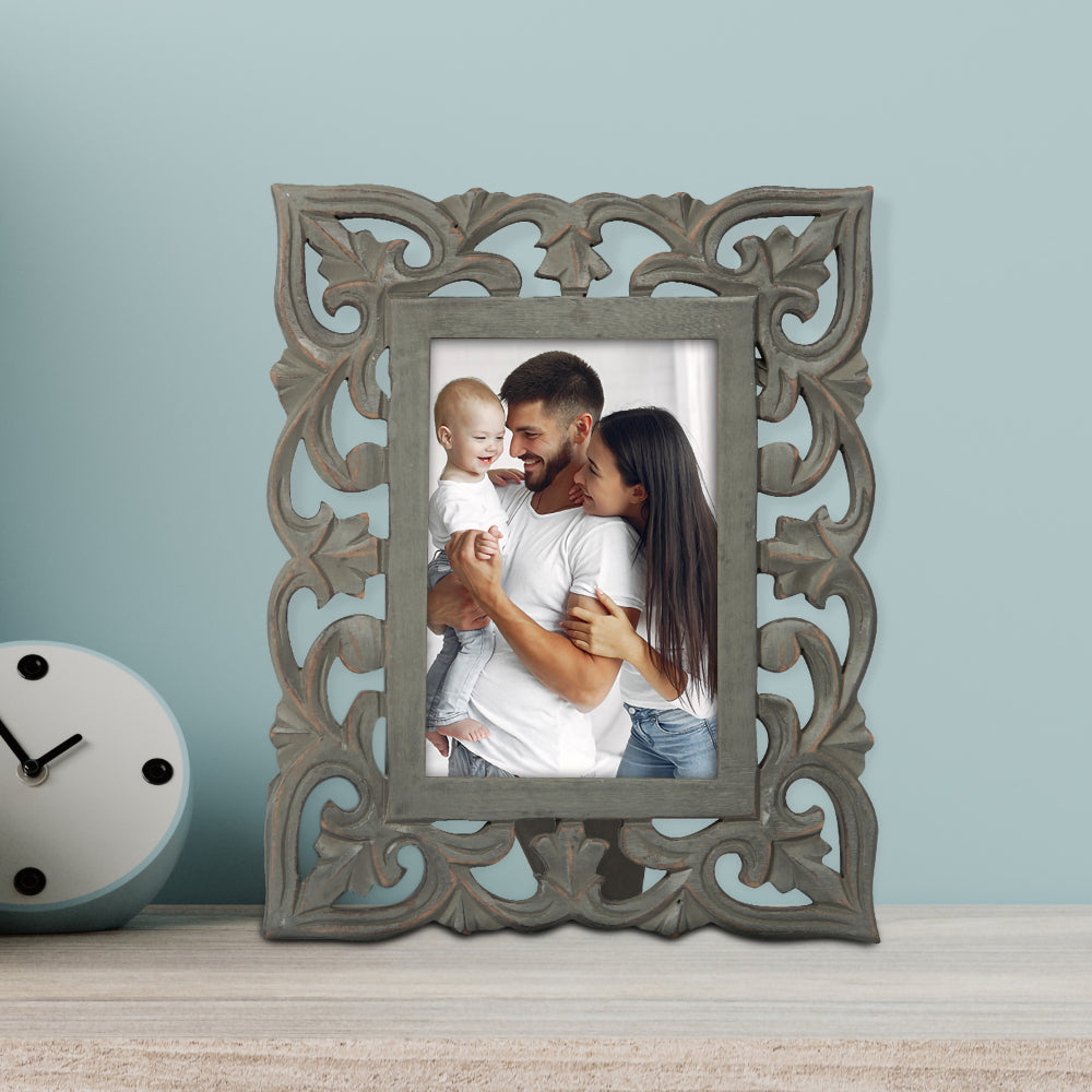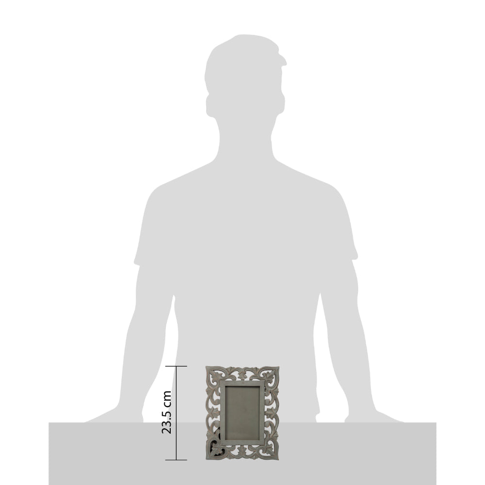 Our intricately made mango wood picture frames feature an eye-catching grey color design to really show off any special photo. This grey colored wood photo frame in mud grey finish has been designed to hold a 4*6 inch photograph. All our beautiful frames are made from mango wood, one of the most sustainable woods known to man.