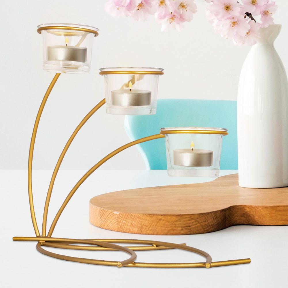 This simple but elegant tree branch shaped tea light holder in Golden color comes with 3 tea light glasses to accentuate the lighting and will give your purpose-filled tea lights a base that will complement their overall appeal. Ideal gifting option for Diwali, festivals, house warming, wedding, party etc. This is a handcrafted product and may have slight irregularities which only add to the charm of the finished product making it an exquisite piece. We recommend dusting with a soft dry cloth. Do not use abrasive cleaner. Do not leave spills unattended.